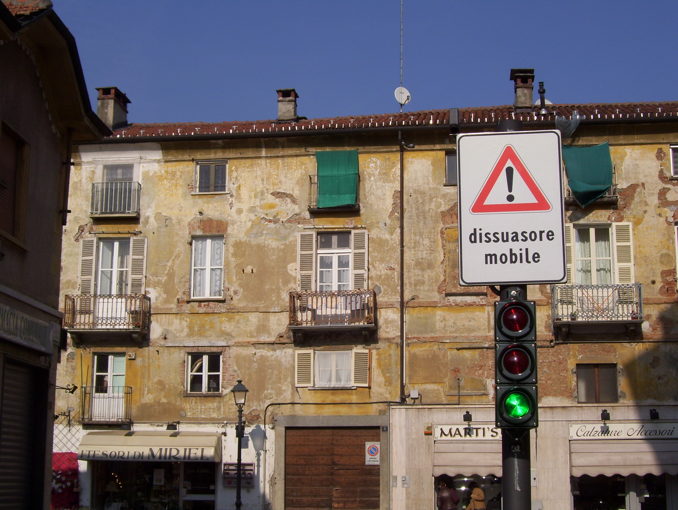 This sign in the small town of Veneria restricts the access of cars to the historic town center