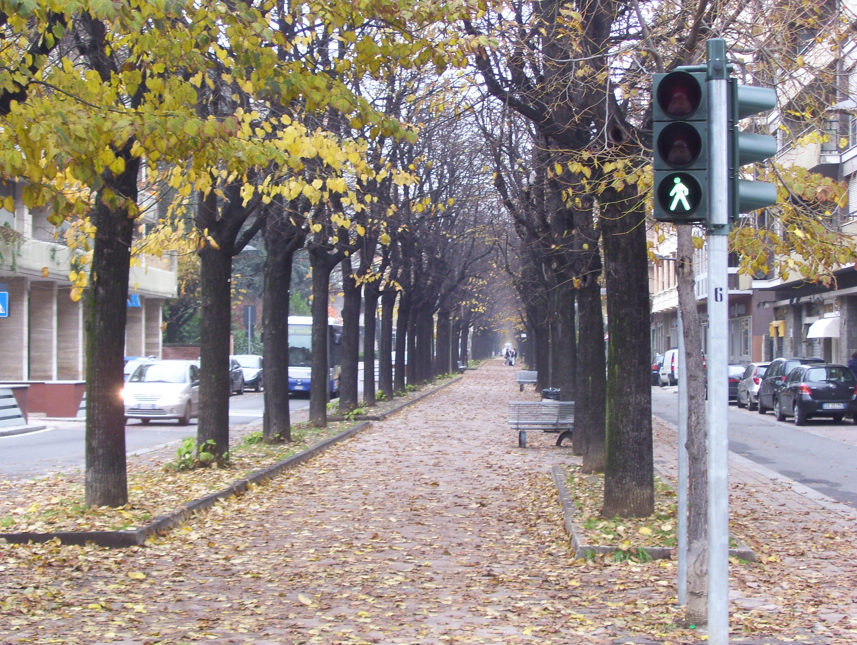 New signals and repaved cobblestones are a few of the pedestrian improvements on this walkway in Grugliasco.
